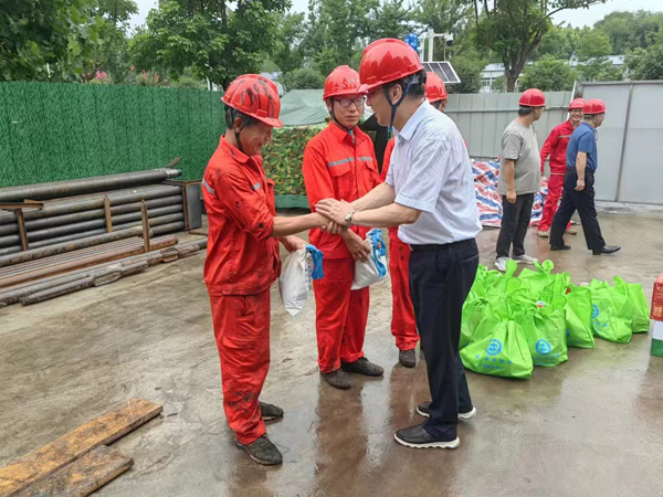 7月16日,党委书记、队长张育文赴阜阳市阜南县地面沉降标组施工现场检查指导工作,并为一线职工送上清凉物品。